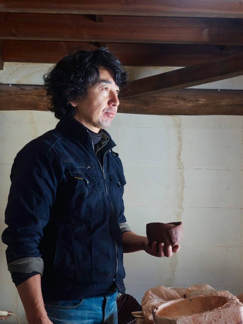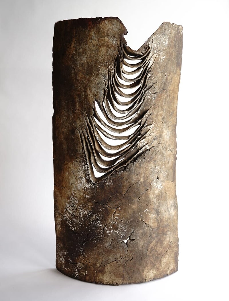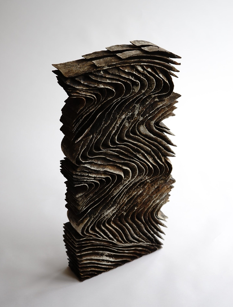 Yukia Izumita was born in 1966 in Rikuzentakata in Iwate Prefecture. He started in 1995 in Noda, Iwate and is now considered one of the leading potters of the Tohoku region. The region is known for sometimes harsh weather conditions, is bordered on the east by the Atlantic Ocean and has a landscape of high mountains, forests and active volcanoes. Yukia Izumita's work appears as a rough representation of the landscape that surrounds him, layered sculptures made from the salt-rich clay of the coastal beaches, resembling the strange and fantastic natural rock and sand formations of his native region. He makes whimsical and unruly sculptures that nevertheless do not look massive and whose layering allows the viewer to follow the creative process from within. Izumita received major awards, including the Excellence Award of the 20th Biennial Japanese Ceramic Art Exhibition and the Grand Prix of the Asahi Ceramic Art Exhibition. His ceramic objects are included in national and international collections such as the Iwate Museum of Art, the Minneapolis Institute of Art and the Philadelphia Museum of Art.
