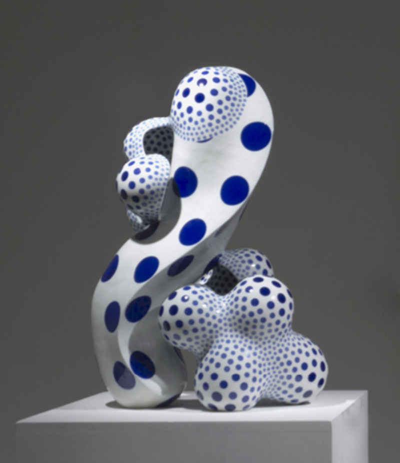 Harumi Nakashima was born in Gifu in 1950 and studied at Osaka University of Arts. He was inspired by the influential avant-garde group Sodeisha, founded in 1948 as a reaction against the traditional, functional aspects of Japanese pottery. Harumi Nakashima himself is now considered an important avant-garde ceramicist who developed a distinctive and unmistakable aesthetic within modern Japanese ceramics. Initially, Harumi Nakashima made pottery with an earthy, abstract look inspired by Picasso and European surrealists. In 2002, he changed his material from pottery to porcelain, a material in which he would excel. He creates sculptures of incredible complexity and beauty, with beautifully twisted organic forms and usually decorated with dots painted in cobalt blue overglaze that are applied after the main firing. His work is so complex that Nakashima sometimes spends months creating each piece to achieve a flawless surface and shape. Harumi Nakashima is a lauded artist who has had exhibitions around the world and whose work is included in the collection of the National Museum of Modern Art in Tokyo, the Victoria and Albert Museum in London, the International Museum of Ceramics in Faenza, Italy, and theHetchens Porcelain Museum in Düsseldorf, among others.