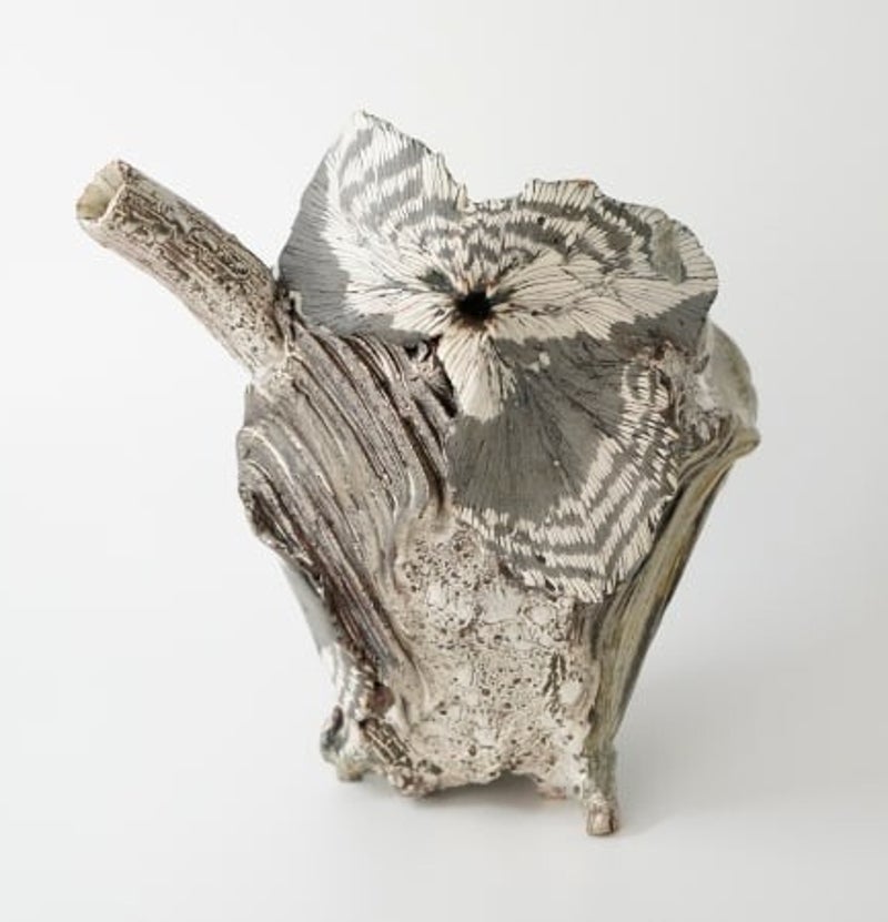 Shingu Sayaka was born in Osaka in 1979 and studied at Osaka University of Arts. She makes both hunctional work such as jugs and tableware and sculptural work without function. However, she is best known for her fragile ceramic floral pieces made from a monochromatic mixture of clay with sludge and glaze. Instead of focusing on their characteristic beauty and vibrancy, using a monotone color palette, her ceramics embody the dark, somber and fleeting nature of flowers as a metaphor for impermanence, ephemerality and fleeting beauty, in fact for human life as a whole. As such, her work is embedded in the Japanese traditional philosophy of mono no aware (物の哀れ- the pity of things) or Mujyo (無常- mutability), terms used to describe the awareness of impermanence or transience of things and a gentle sadness at their passing. It is a theme deeply rooted in Japanese arts and what is derived to highlight the similarities between the life stages (growth, flowering, decay) of flowers and people and to foster awareness of the impermanence of life and an appreciation of fleeting beauty.