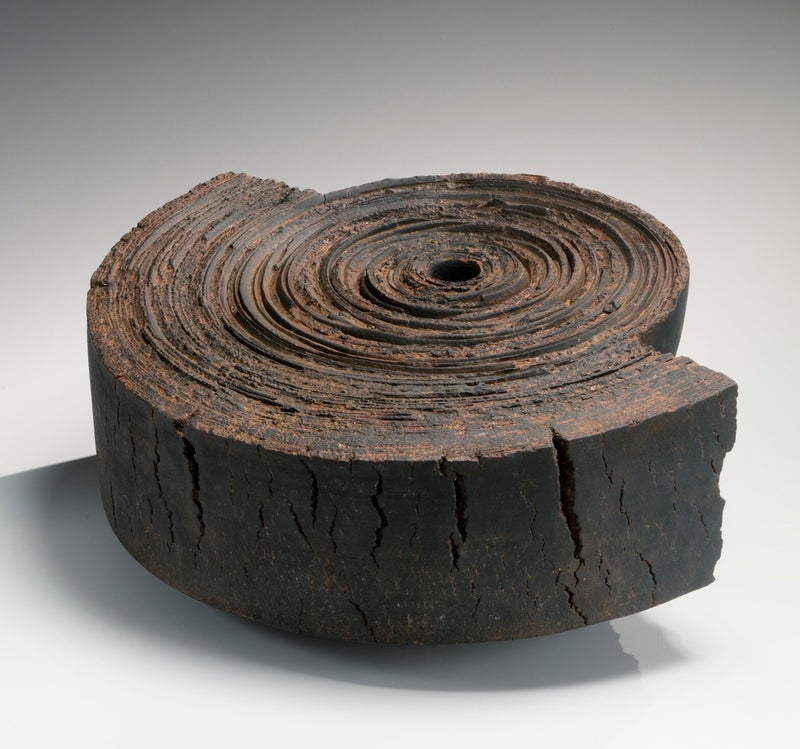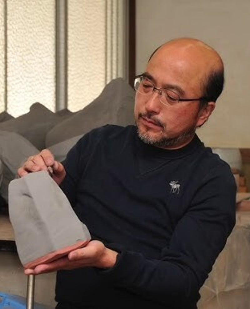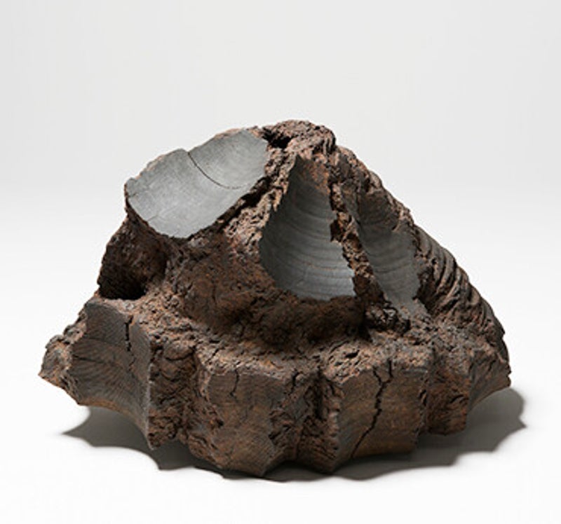 Yō Akiyama mainly makes very large sculptures inspired by Shino and Bizen ceramics of the Momoyama Revival of just after World War II, which are only suitable for display in large spaces. He specializes in a technique in which he covers the black-brown clay he uses for his sculptures with iron powder after firing, giving the surface a special hue. The cracked texture of his sculptures is characteristic of his work: it must leave traces of the creation process. He achieves this by firing clay of low plasticity at a relatively low temperature and then heating it with a gas burner. This creates a form with a soft core and a hard, outer shell that can be partially or completely torn and peeled off. The duality of creating and destroying is part of what he wants to show in his work. Yō Akiyama also deviates from traditional ceramic processes by not using a glaze to show the fired clay in its most natural form. Yō Akiyama has realized very diverse series over the years with titles such as "Oscillation," "Geological Age" and "Metavoid." What is consistent in all the series is the earthy, almost prehistoric feeling that besets the viewer because of the expression of texture and volume of his sculptures. Occasionally he also makes smaller work, but even a small work is about 50 large, and a large work is several meters long, up to six meters. This already makes it clear that Yō Akiyama's scupltures are far removed from traditional ceramics. He is a true artist with a longing for something primary and rare, like a philosopher in search of the roots and principles of existence itself. His sculptures, which contain the latent power of destruction and creation, are highly regarded both nationally and internationally. His work is regularly exhibited in major museums and galleries around the world and is in a number of international collections, including the Museum of Modern Ceramic Art in Gifu, the National Museum of Modern Art in Tokyo, the Faenza International Ceramic Museum in Italy, the Minneapolis Institute of Art in Boston and the Victoria & Albert Museum in London.
