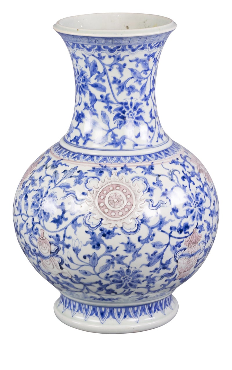 Porcelain vase with flower design, underglaze colors. Made by Imperial Household Artist Itaya Hazan in 1929,